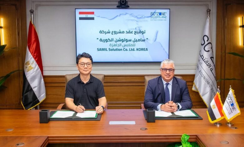 وقّع وليد جمال الدين، رئيس الهيئة العامة للمنطقة الاقتصادية لقناة السويس، بمقر الهيئة بالعاصمة الإدارية، عقد مشروع شركة “ساميل سولوشن- Samil Solution Co., Ltd” الكورية، المتخصصة في صناعة الملابس الجاهزة، وذلك لإقامة مشروع جديد بمنطقة القنطرة غرب الصناعية التابعة للهيئة، على مساحة 21 ألف متر مربع، بإجمالي استثمارات قدرها 4.49 مليون دولار أمريكي (تعادل نحو 212 مليون جنيه مصري)، ويستهدف المشروع إنتاج الملابس الجاهزة من التريكو والمنسوجات (Knit & Woven Garments) بطاقة إنتاجية سنوية تبلغ 8.8 مليون قطعة، مع تصدير 100% من الإنتاج إلى الأسواق الخارجية، ومن المقرر أن يوفّر المشروع نحو 1000 فرصة عمل مباشرة، وقد وقّع عن الشركة السيد/ كيم غن وو (Kim Gun Woo)، رئيس مجلس إدارة الشركة.