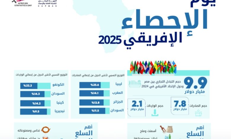 أصدر الجهاز المركزي للتعبئة العامة والإحصاء بيانا بمناسبة يوم الإحصاء الإفريقي، الذي بدأ الاحتفال به عام 1990 تأكيدًا لأهمية الإحصاءات الرسمية ودورها المحوري في التخطيط والتنمية على مختلف المستويات.