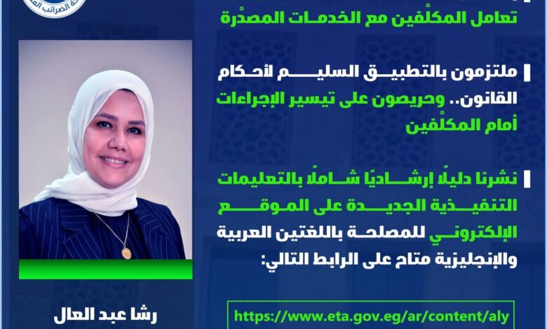 أكدت رشا عبد العال رئيس مصلحة الضرائب المصرية أنه بناءً على توجيهات وزير المالية، تم إصدار التعليمات التنفيذية رقم (٤٥) لسنة ٢٠٢٥ بشأن آلية تعامل المكلَّفين مع الخدمات المصدرة، وذلك في إطار حرص وزارة المالية ومصلحة الضرائب المصرية على توحيد تطبيق المعالجة الضريبية المرتبطة بالخدمات المصدرة للخارج.