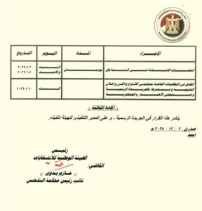 الجدول الزمني لـ30 دائرة الملغاة بحكم المحكمة الإدارية العليا