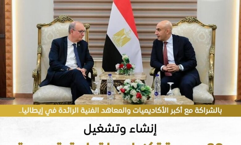 مصر توقّع 18 بروتوكولًا لإطلاق 89 مدرسة تكنولوجيا تطبيقية بالشراكة مع إيطاليا بدءًا من 2026/2027