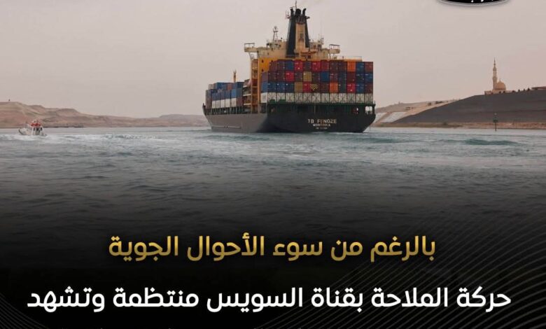 وأكدت الهيئة استمرار جاهزيتها للتعامل مع كافة التحديات المناخية، بما يضمن انسيابية حركة السفن وتعزيز مكانة القناة كممر ملاحي عالمي حيوي.