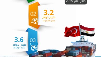 الإحصاء : 6.8 مليار دولار حجم التبادل التجارى بين مصر وتركيا خلال عام 2025